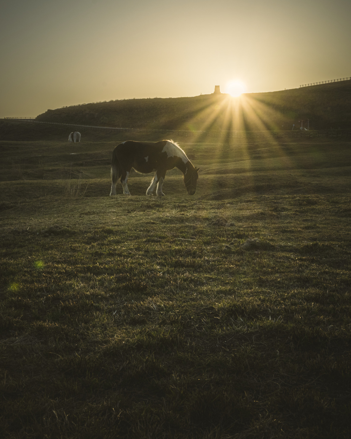 阿蘇くじゅう国立公園には、日本最大規模の草原が残されています。この草原は、千年以上も前から、牛や馬の放牧、野焼きなどといった形で、人と自然が関わることで維持されてきました。作品中の馬は、普段は観光客の皆様を乗せて乗馬体験を楽しませてくれますが、休憩時間には、草原をのんびり散歩したり、草をはむ姿を見ることができます。撮影場所の草千里は、自由に草原に立ち入ることができる貴重なエリアとなっています。