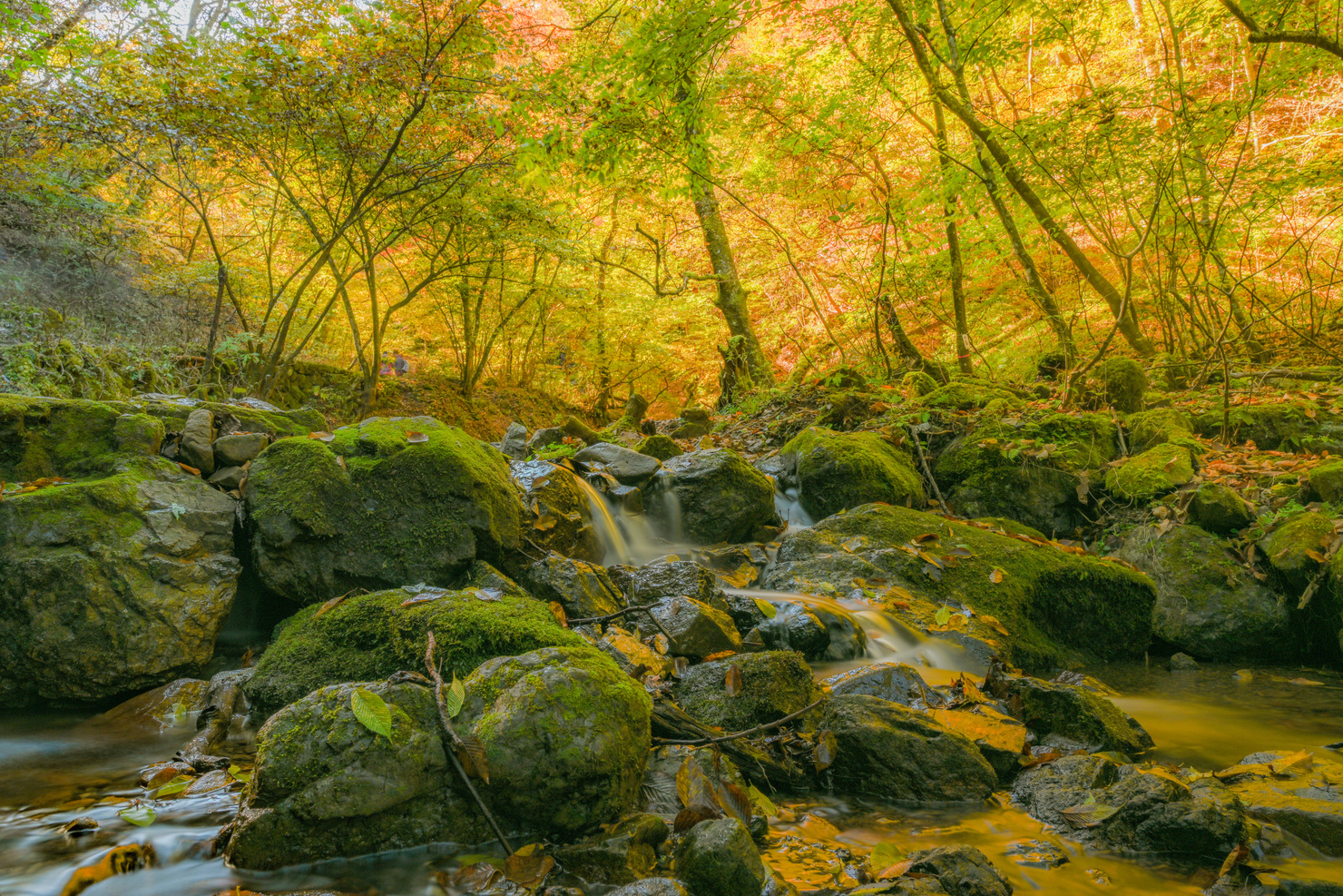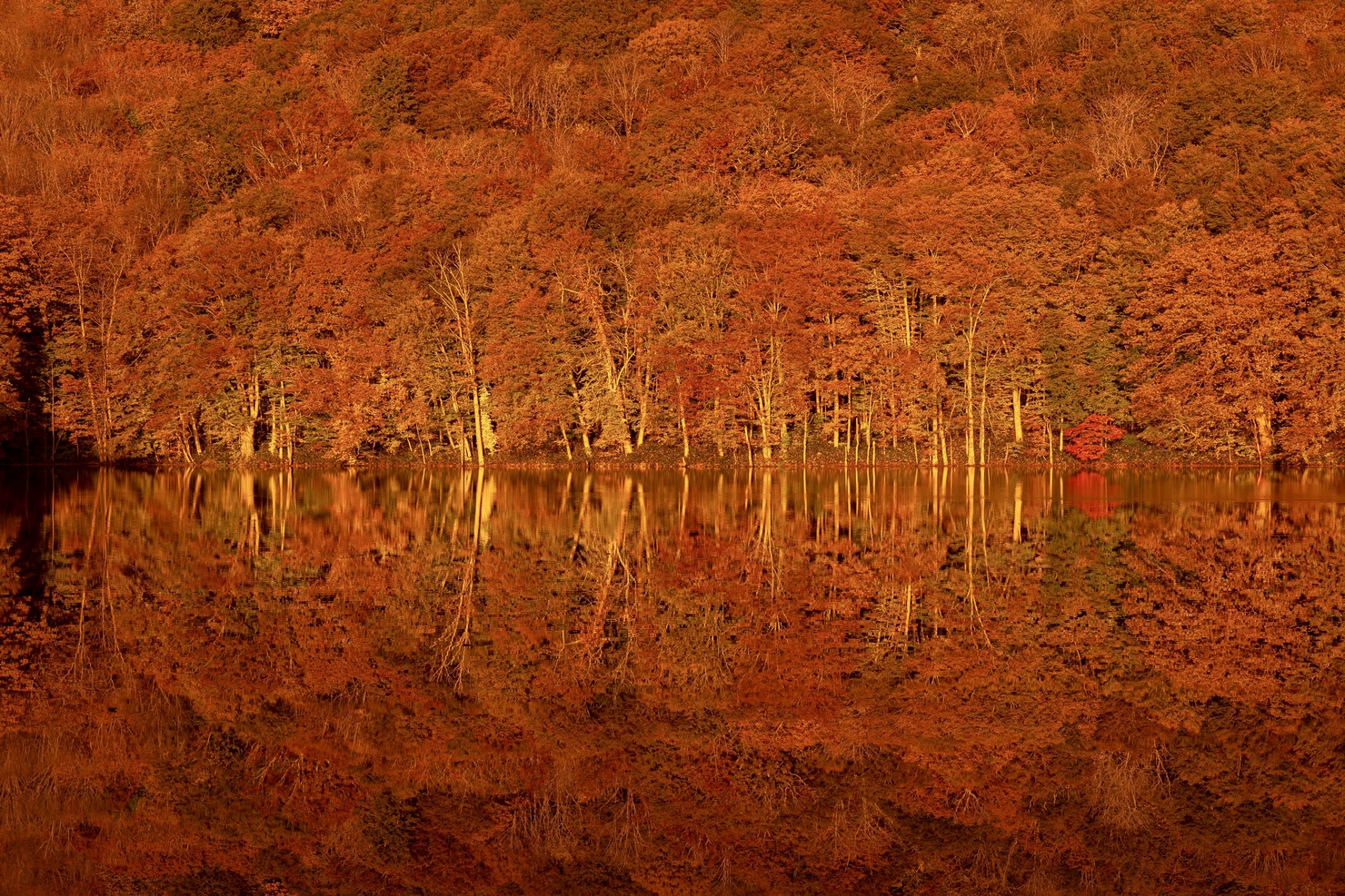 十和田八幡平国立公園は、「みちのくの脊梁~原生林が彩る静謐の湖水、息づく火山と奥山の湯治場」をテーマとする山と湖と渓流の公園です。 蔦沼は、十和田八甲田地域の南八甲田山麓のブナ林に囲まれた湖沼群の一つで、湯治場としても古くから愛される場所です。近年は紅葉期の混雑緩和のために事前予約や協力金徴収の取組も行っています。 季節や時間により様々な表情を見せる蔦沼の素晴らしい一瞬を捉えていただいた写真です。