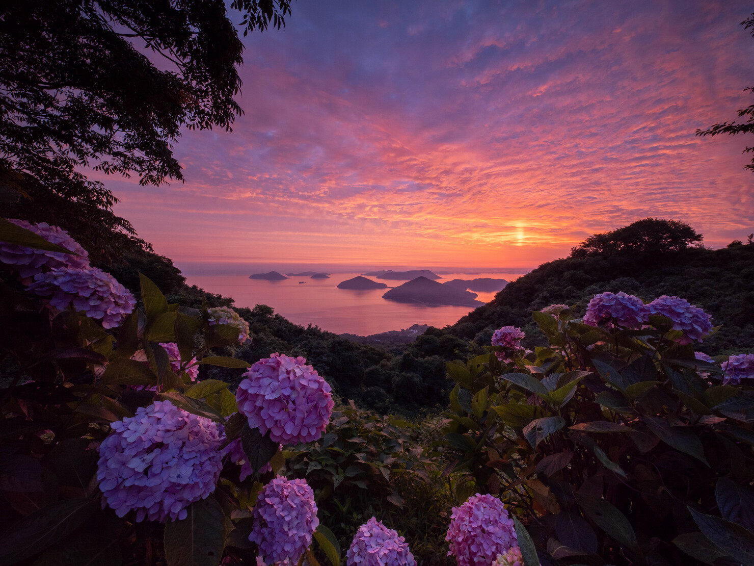 瀬戸内海国立公園は、大小多数の島で構成された内海の多島海景観が特徴です。 また、瀬戸内海一帯は早くから文化が栄え、人々の暮らしと自然が共存してきた親しみやすい景観も特徴です。 紫雲出山は瀬戸内海国立公園の象徴的な景観を望む展望地のひとつです。 春は桜、初夏はあじさいが咲き誇り、山に彩りを添えますが、それぞれの季節にはそれぞれ異なる美しい景観があります。 季節ごとに表情を変える美しい景観を体感しに紫雲出山を訪れてみてはいかがでしょうか。